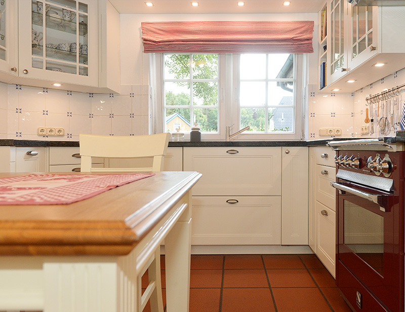 Assoziationen sind schnell geweckt, wenn sich Rot mit Weiß kombiniert, honigfarbenes Holz von Decke und Türen strahlt und man meint den Kaiserschmarren schon riechen zu können. Bei dieser Küche ist allerdings das gelungen, was nur wenigen Einrichtungen gelingt, die Synthese aus Modernität und einem Landhausstil, der überhaupt nicht verstaubt daher kommt.