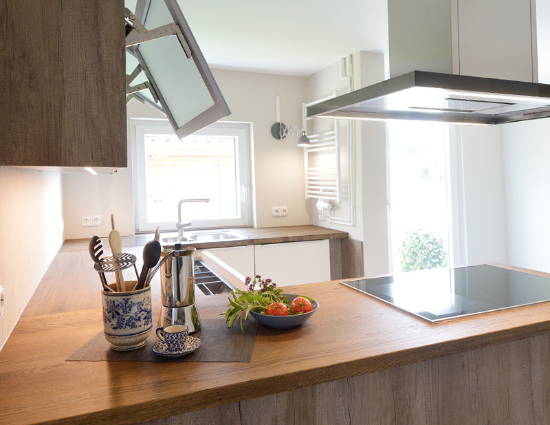 Schön, funktional und sehr effizient. Die neue Einbauküche, die wir für eine bestehende Immobilie unseres Kunden planten und einbauten, ist ein echter Allrounder. Unter der warmen, hölzernen Oberfläche schlummern ein paar Extras, die wir Ihnen nicht vorenthalten möchten.
