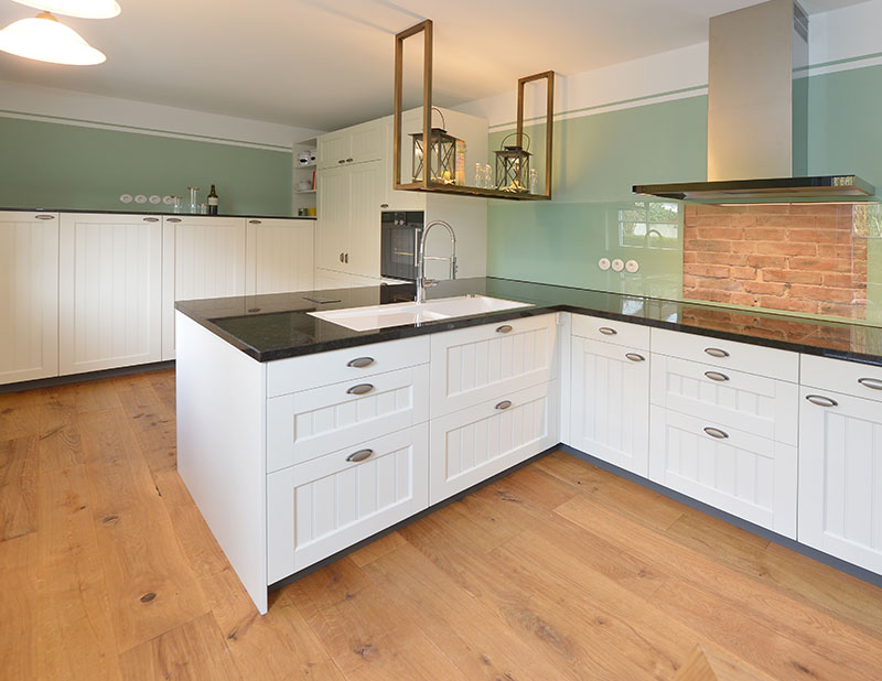 Geschichte bewahren. Hier erzählt die Küche von der Vergangenheit ihres Raumes und wie gut sie als neue Landhausküche darin aussieht.