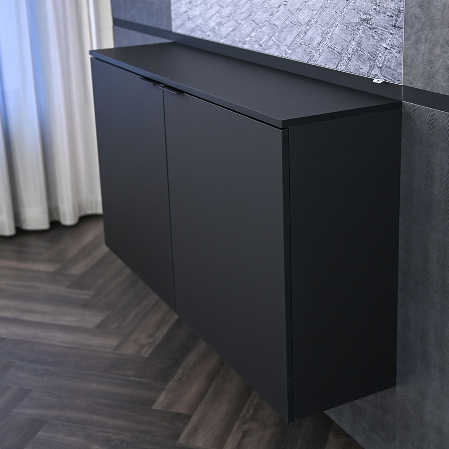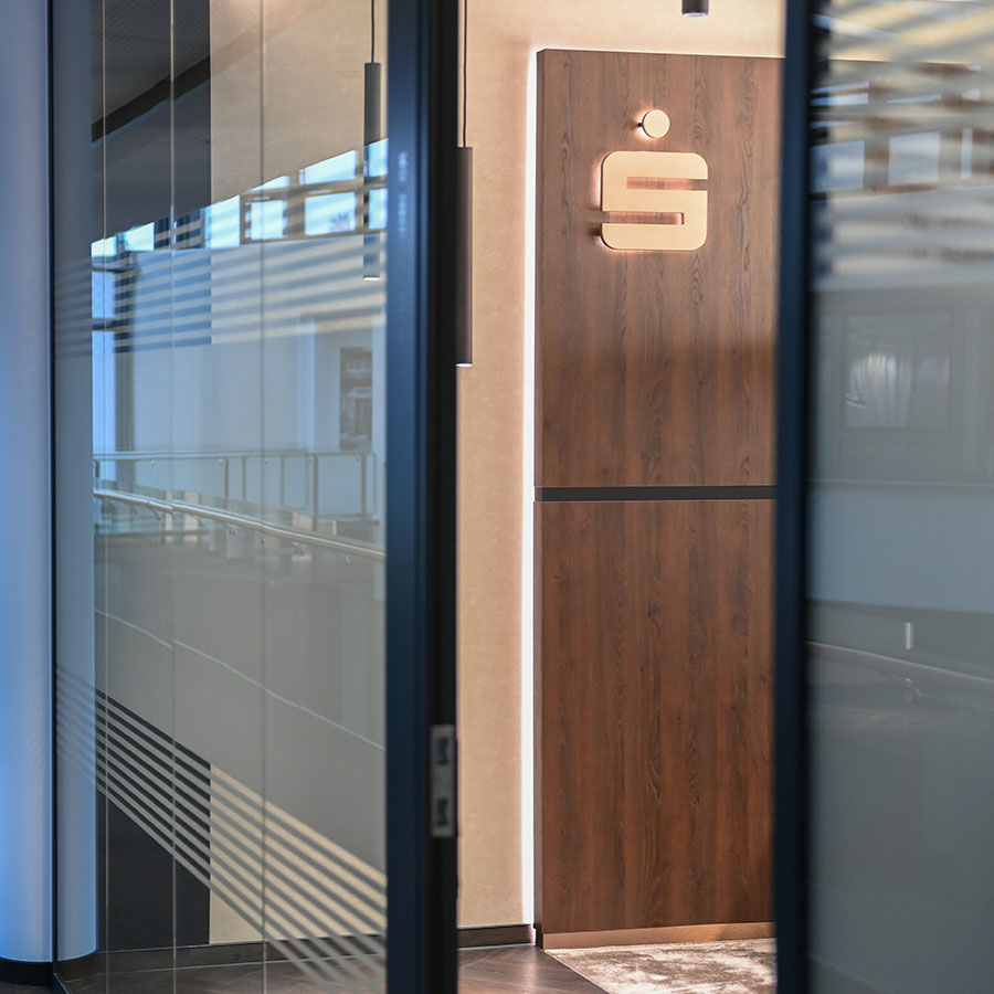 Die ehemals abgeschotteten Bürobereiche wurden zu einladenden Beratungsräumen transformiert. Statt harter architektonischer Übergänge entstehen Räume mit Dialog- und Anschlussfähigkeit. Parallel dazu laden vorgelagerte Empfangszonen die Besucher ein durchzuatmen und sich für ein anspruchsvolles Gespräch zu justieren. In den Beratungsräumen selber sind es Vorhänge, Teppiche und Paneelwände die die typische Bankanmutung auflösen. Textile Oberflächen und Stoffwandpaneele bringen notwendige akustische Ruhe und eine fast wohnliche Qualität in die Räume. Ein zentrales Gestaltungselement am Kopf des Besprechungstisches bildet die Monitorwand mit präzise ausgeführter Schattenfuge. Sideboards und Akzentbeleuchtung strukturierten alle Räume, ohne sie zu überladen. Bilder und Fotografien, bewusst und historisierend in Schwarz-Weiß gehalten, greifen regionale Motive auf und verankerten die Filialen visuell im lokalen Kontext. Die Sparkasse als Teil der Region, nicht als abstrakte Institution. Raumlicht für die Grundstimmung, Arbeitslicht für funktionale Präzision, Akzentlicht für Tiefe und Atmosphäre. Glastrennwände ersetzten massive Abgrenzungen und installieren Transparenz und Großzügigkeit. Räume wurden geöffnet, Sichtachsen verlängert, Tageslicht genutzt. Der Materialmix folgt derselben Logik. Hochwertig, haptisch angenehm, langlebig. Schwarzer pulverbeschichteter Stahl beim Gestell setzen klare Linien beim Besprechungstisch. Die Garderobe, schwarzgeölter Stahl, stammt aus der gewachsenen Zusammenarbeit mit der Tiroler Edelschmiede.